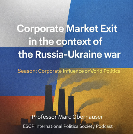 The ESCP International Politics Society Podcast launches a new season, Corporate Influence on World Politics, with an episode on corporate market exit during the Russia–Ukraine war. What may appear to be purely economic decisions — whether companies stayed, suspended operations, or left — quickly became political and geopolitical choices after 2022. Hosted by Louise and joined by Professor Mark Oberhauser (ESCP Business School), we discuss why firms reacted so differently, how pressure from governments, investors, and consumers shaped corporate behaviour, and what this reveals about the growing role of business in international politics.